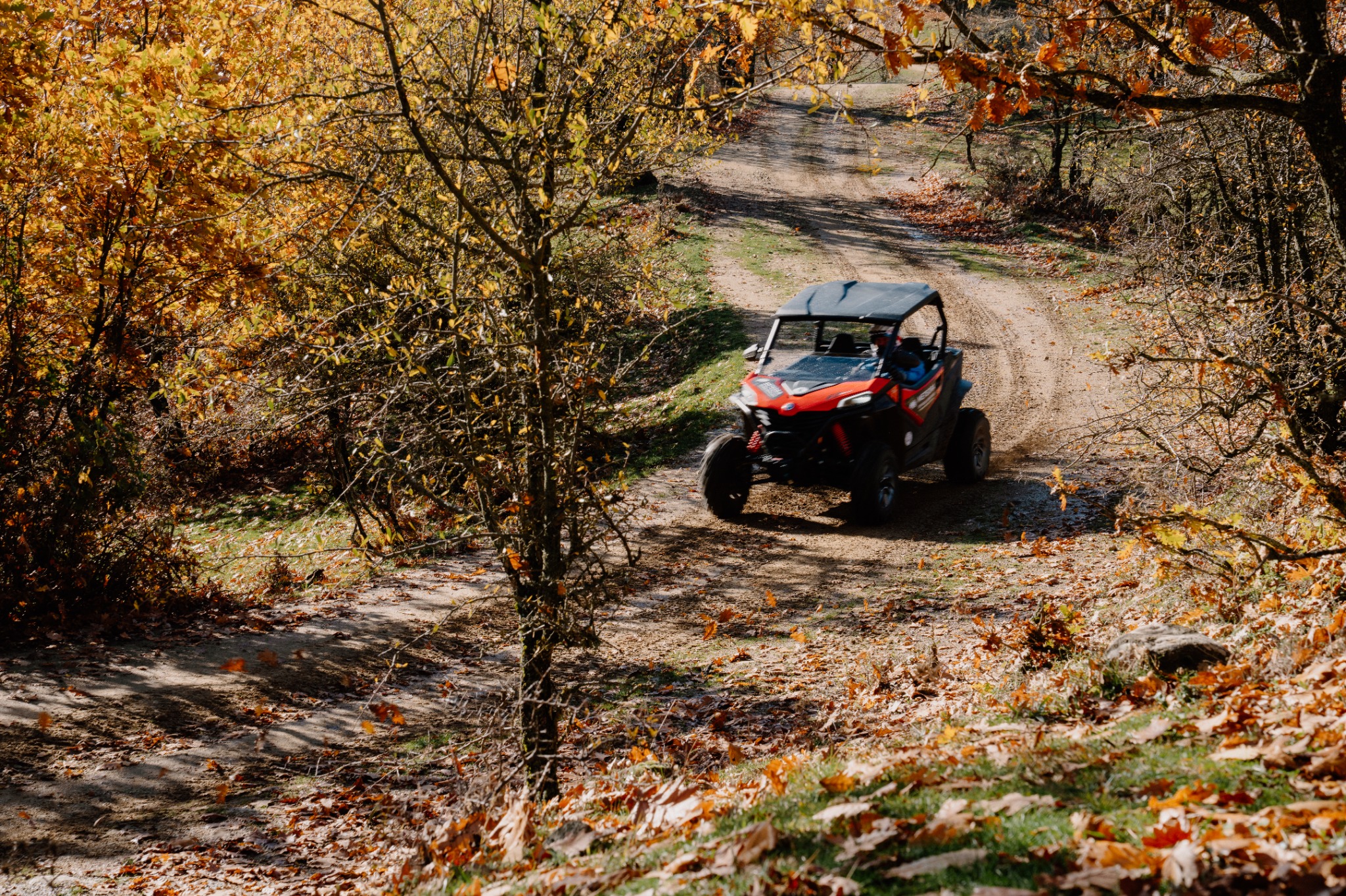 Your experience begins at our base in Kastraki, where you’ll meet your guide, gear up with safety equipment and receive a short but detailed briefing on how to handle your CF MOTO SxS buggy. Once everyone feels comfortable, you set off towards the rocky area around Ypapanti, leaving the busy roads and buses behind.